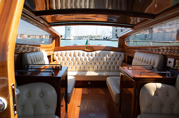 Our guests can relax in our comfortable leather sofas with an Italian bottle of wine or prosecco from our minibar (we can also provide any other drinks the client pleases up on request), while discovering the unique and magical city which is Venice. We are adding to your comfort additionally service: charger for electronic device in your cabin and wi-fi, option, open roof in the cabin, heating, music.