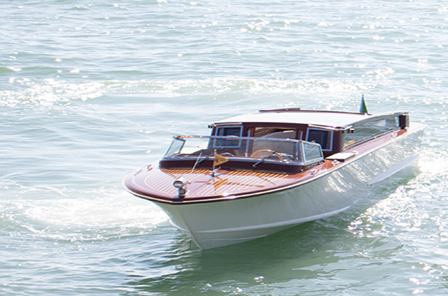 The boat Serenissima Style is made of plastic externally and internally made of wood with a fine touch which combines classic and modern style.